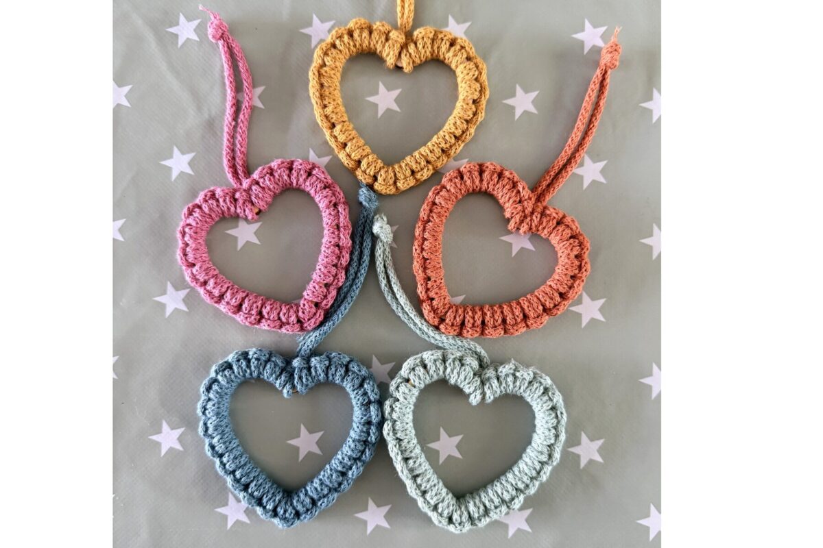 Makes 5 decorative macramé hearts