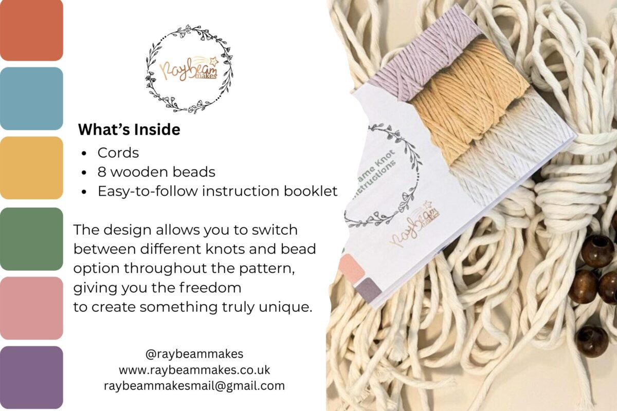 The included easy-to-follow instruction booklet guides you through versatile macramé knots, allowing you to customise your hanger to suit your space or gifting needs. While the kit provides everything needed for one hanger, it also includes clear instructions and recommended cord lengths so you can make additional hangers if you wish to purchase extra cord.