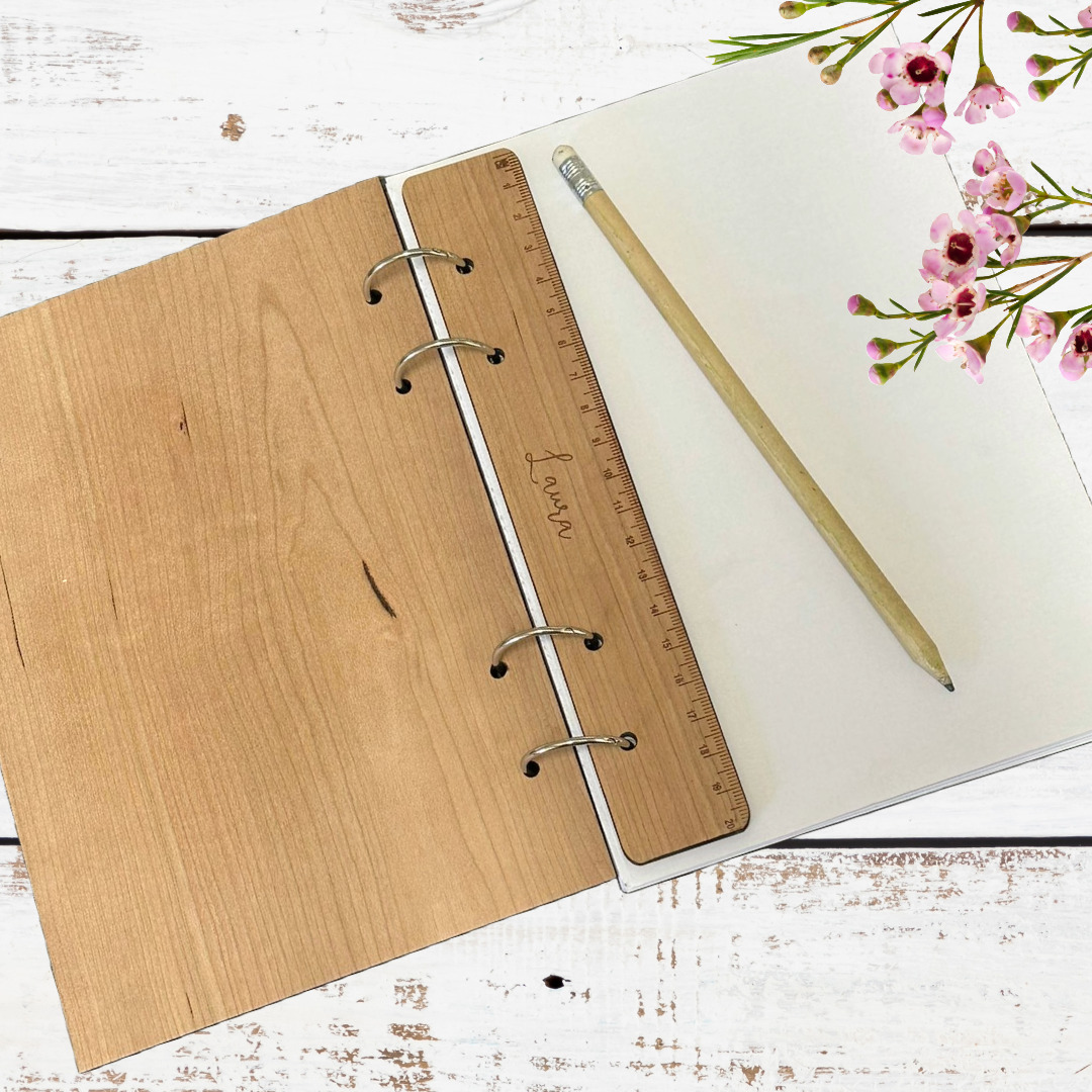 Included Accessories: Comes with 20 A5 plain paper sheets, perfect for journaling, sketching, or note-taking, along with a personalised wooden ruler.