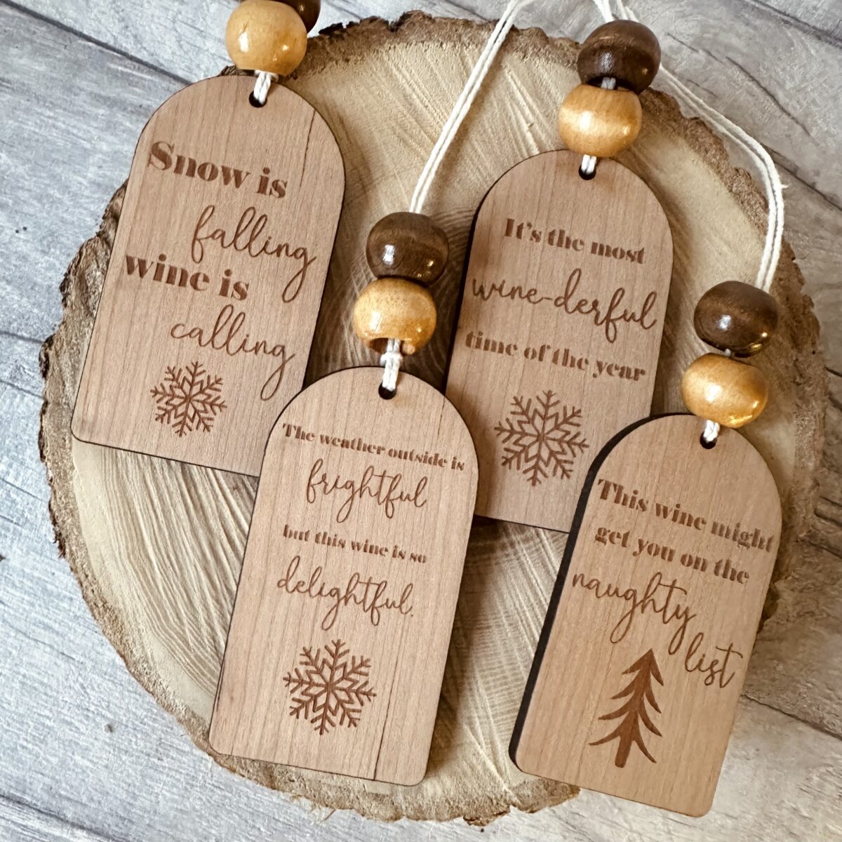 Personalised Wooden Wine Bottle Tags – Christmas Wine Gift Tags – Festive Bottle Accessories – Novelty Wine tags