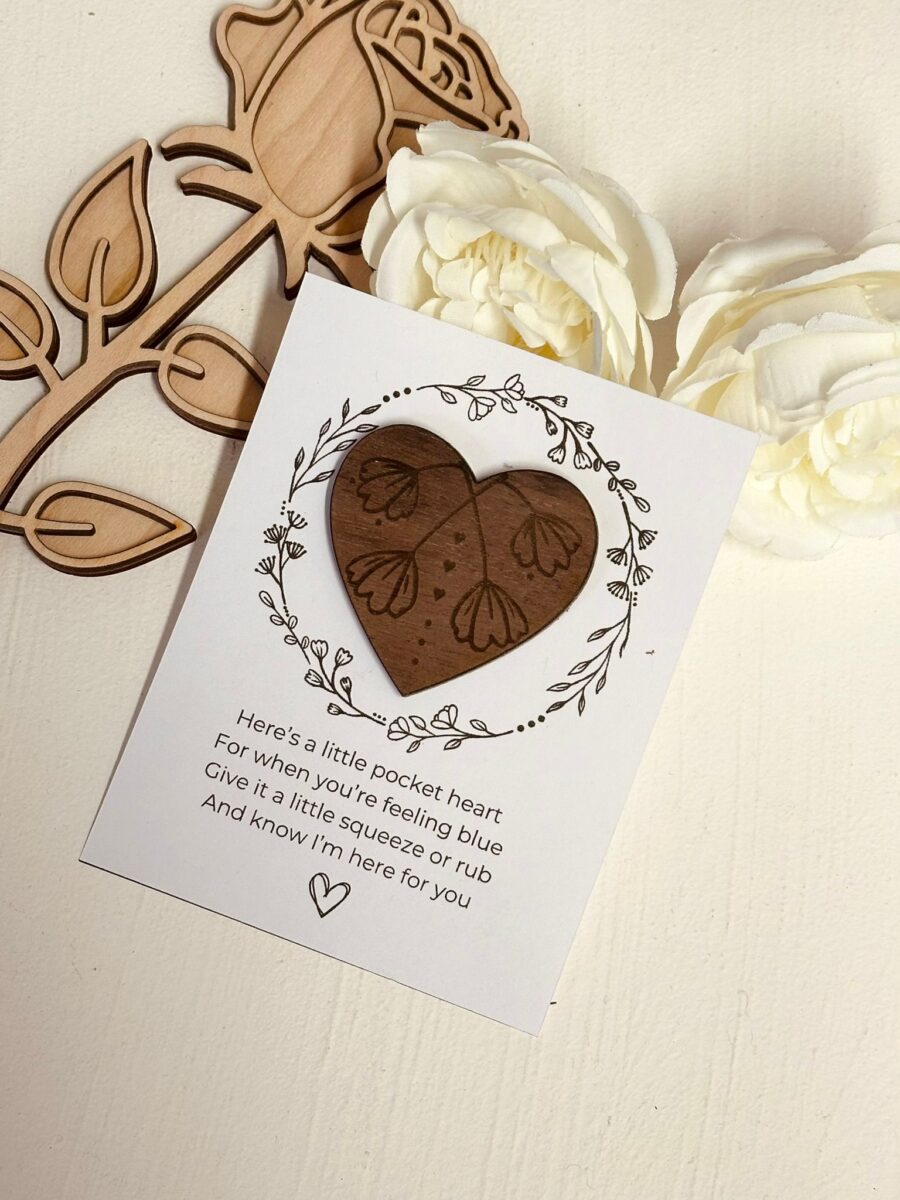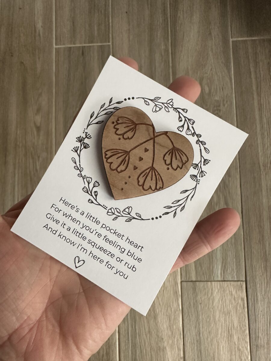 These handmade wooden pocket hearts are thoughtful keepsakes designed to offer comfort, encouragement and connection – even when you can’t be there in person.
